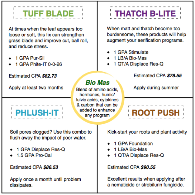 Have a specific problem on your turf that you just can't seem to fix? No matter what nutrient program you use, we put together 4 specialty applications that you can add as you need it. Plus, they are all UNDER $95/acre! These can be easily customized to your needs, just ask your ITP sales rep!